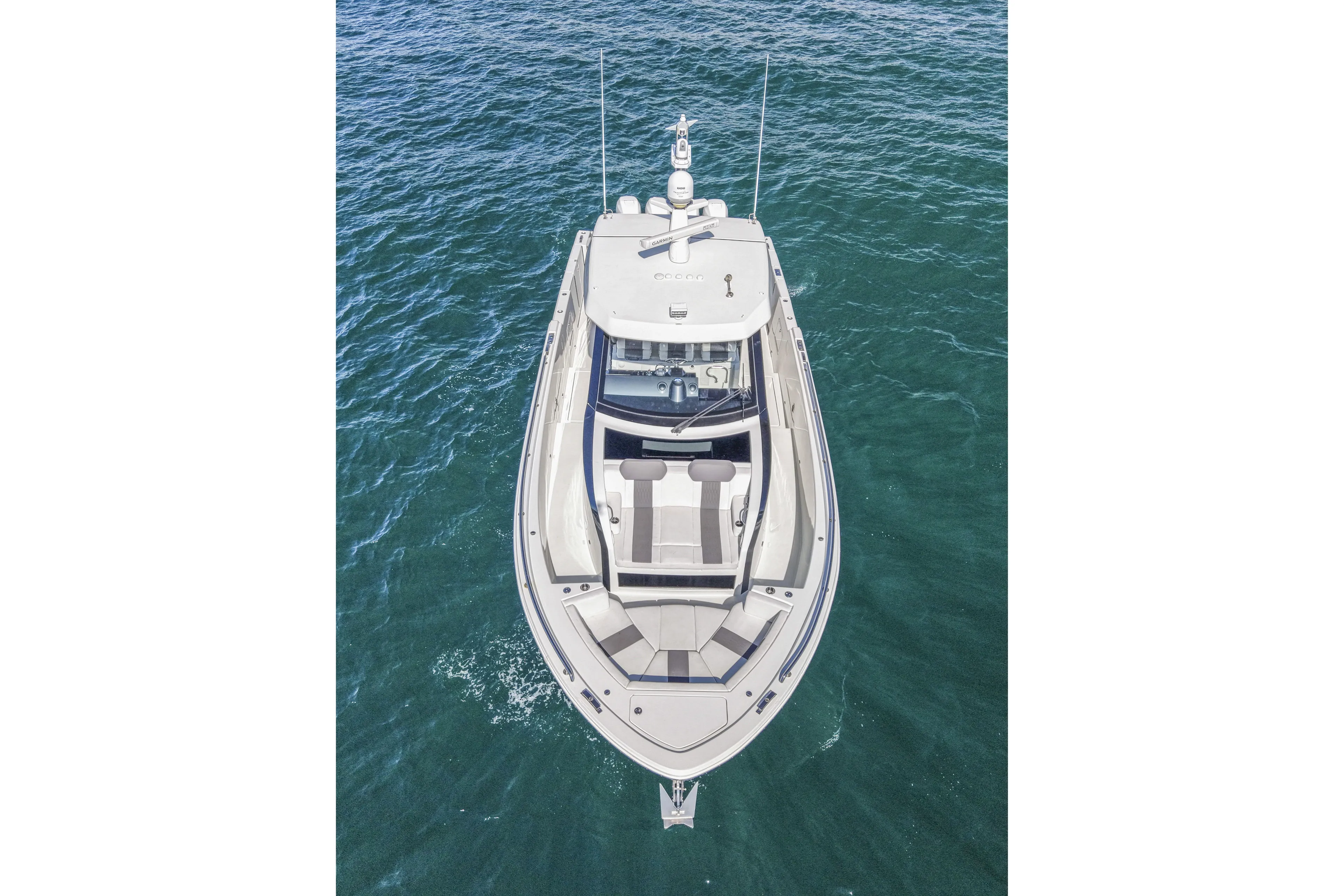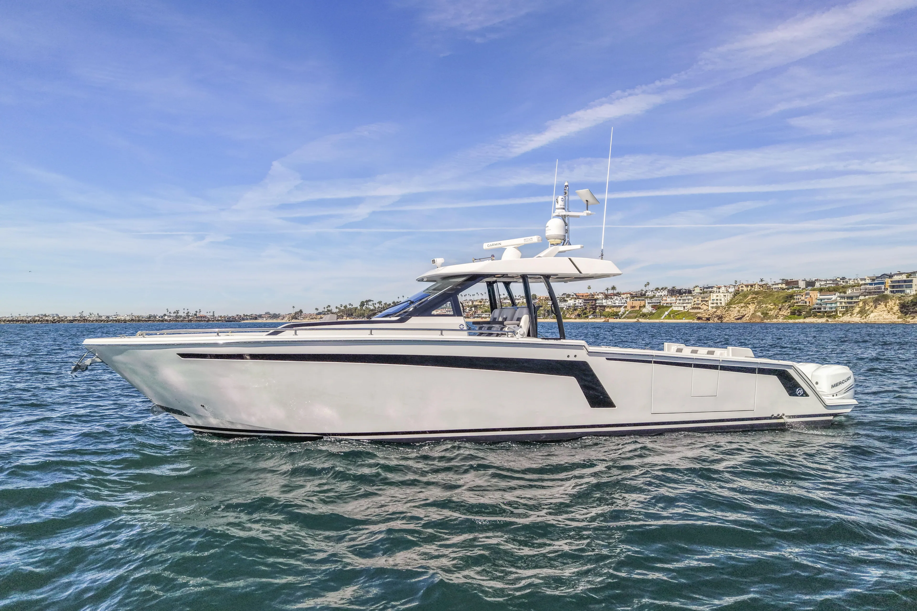 The 2021 Ocean Alexander 45 Divergence “DADDY ISSUES” is a high-performance luxury center console built for owners who want serious offshore capability combined with the comfort and systems typically found on much larger yachts. Powered by quad Mercury Verado 400 outboards, this 45’ platform delivers exceptional speed, reliability, and range, making it equally suited for offshore runs, island cruising, diving trips, or entertaining on the water. With 607 gallons of fuel capacity, the Divergence offers impressive cruising range and the confidence to comfortably run long distances offshore. Joystick piloting with Mercury SkyHook and an integrated bow thruster provide precise low-speed maneuverability, making docking and tight marina handling simple even for short-handed crews.