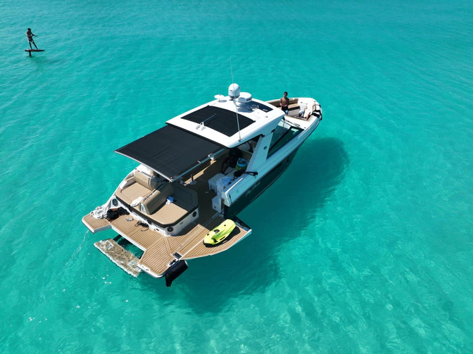 This 2021 Sea Ray 400 SLX features a strong option list, highlighted by a Seakeeper gyro stabilizer. Powered by twin Mercruisers 8.2 liter HO MAG BR3X stern drives with approximately 250 hours, the boat is in excellent condition and has been kept out of the water. Located in Miami, it offers a versatile layout ideal for entertaining, day boating, and extended time on the water, with the build quality and ride Sea Ray is known for.