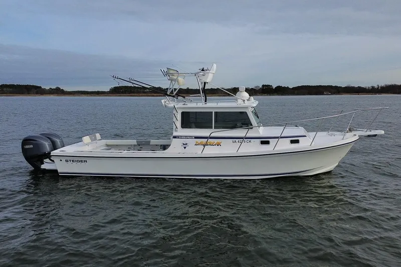 The Steiger 31 Chesapeake features a 10 ft beam with a 22 degree deep-v deadrise. It’s the perfect size for taking down even the largest fish in any sea conditions, while offering excellent performance with efficient twin 300 HP power (350 twin optional). A 300 Gallon fuel capacity gives the 31 a “canyon ready” 400+ mile range.