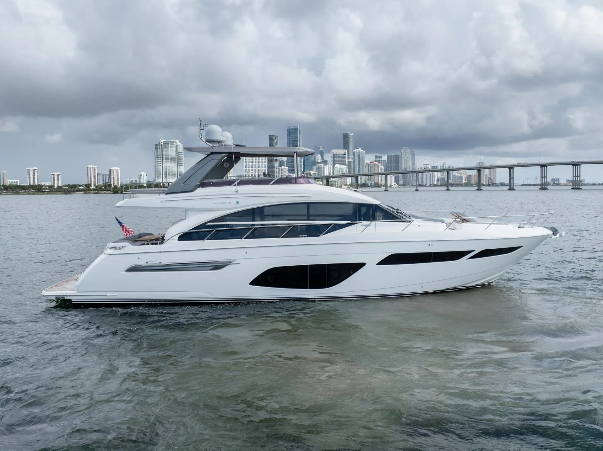 Once onboard DEFINITE MAYBE, you will realize she is a breathtaking beautiful craft. The 2019 F70 Princess was once the flagship of the Princess flybridge range. Her spacious flybridge has a sociable layout with a fully equipped wet bar area and open plan galley, complemented by a surround sound system and LED lighting throughout.