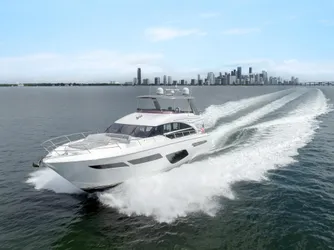 Once onboard DEFINITE MAYBE, you will realize she is a breathtaking beautiful craft. The 2019 F70 Princess was once the flagship of the Princess flybridge range. Her spacious flybridge has a sociable layout with a fully equipped wet bar area and open plan galley, complemented by a surround sound system and LED lighting throughout.