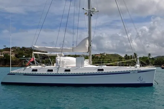 After we purchased the yacht I was looking at a 2004 copy of Multihull international and saw our boat on the cover, the article inside stated that she had one that years ARC. I had seen her previous owner sailing it near Bequia years before and had admired her then. My wife and sailed her up the Caribbean from as far as Anguilla with stops all along the way. She is a comfortable boat for cruising with a deep safe cockpit is easily handled by two and has enough creature comforts for cruising .We also won our division at the inaugural Caribbean Multihull Challenge in St Marten and twice won our division in Grenada Sailing week .