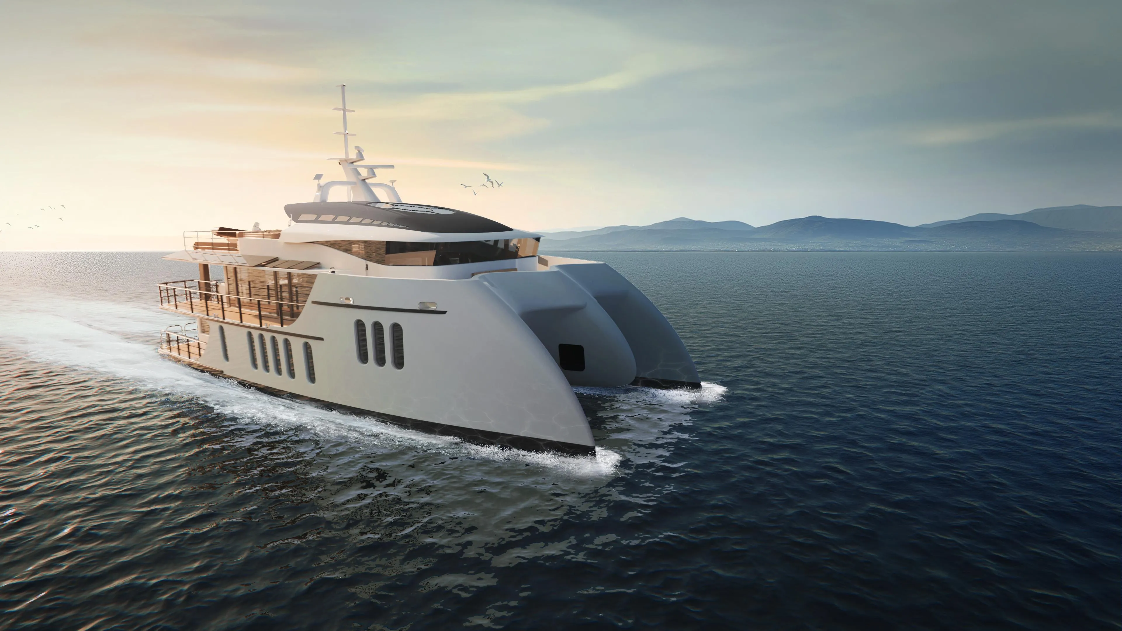 Fresh design, beautiful interior with 230 GT, comparable to the space of a 35m monohull!
