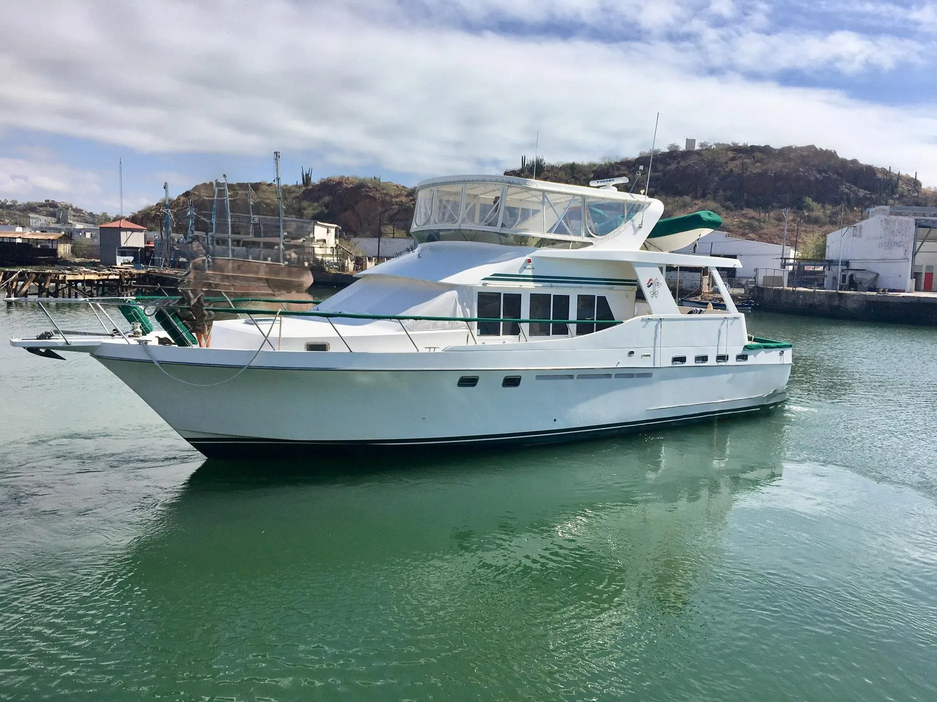 This is a quality cruising Yacht/Fisher with comfortable live-aboard space for a family. This boat has been Captain maintained since purchase and has only had three owners. She was repowered with Caterpillar 3126 engines in 2010 to assure reliability and increased range for the journey through the Panama Canal. She has Naiad stabilizers, a newer RIB dinghy with crane, water-maker, hydraulic bow and stern thrusters, 3000 Watt inverter and many other recent quality upgrades.