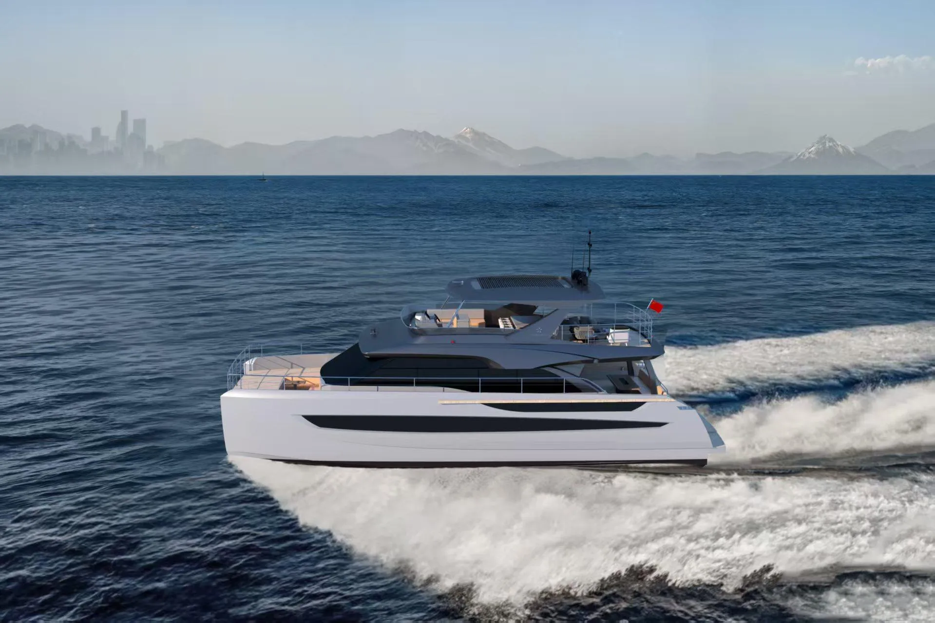 A chic yet robust silhouette and a steadfast vertical bow, the EF66 catamaran elevates luxury through its innovative spatial design.