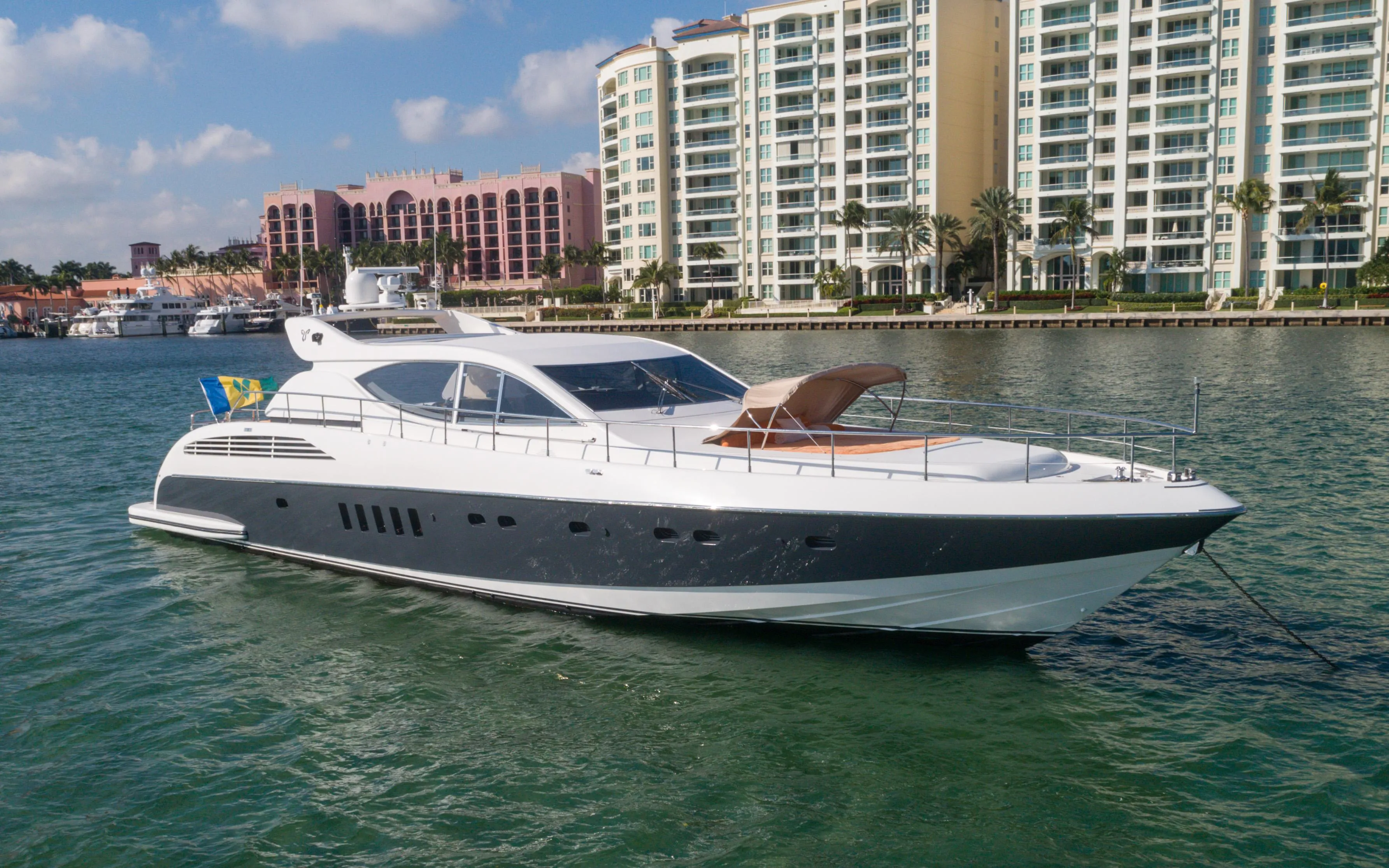 Clean 2000 79-foot Arno Leopard motor yacht, the DOLCE VITA II, a true embodiment of maritime luxury. This vessel is powered by twin MTU 12V2000 jet drive engines, providing a perfect blend of power and refinement, ensuring a smooth and commanding performance on the water. With a shallow draft she is perfect for Caribbean cruising.