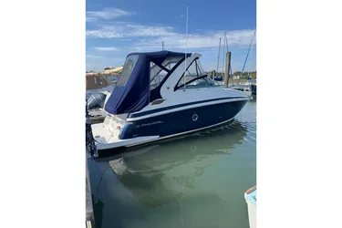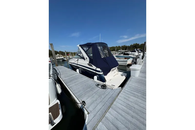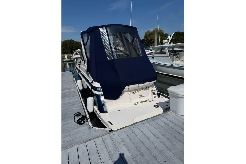 A Bimini top with full weather enclosurer for those no so great days to go boating to entertain family and friends at that the dock she is ready to go for the next owner. Mantained by dealer with low hours. Shown by appointment.