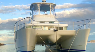 This fast trawler catamaran hull has many seaworthy features that allow for guest comfort, efficient fuel burn, shallow draft and life on the hook with solar & water maker.With 3 staterooms and ensuite heads, each cabin offers a private space for guests to enjoy all natural light and natural airflow from over head hatches and opening port lights.