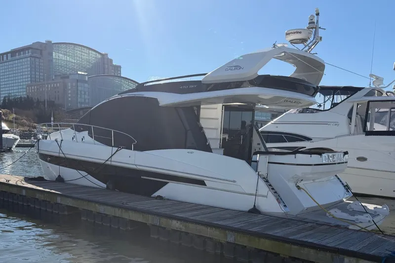 The 470 SKY joins the lineup bringing even more innovation to the Galeon Third Generation range. Based on the successful 460 FLY, it shares the same hull design and main deck layout allowing for great space for passengers and activities. Where the SKYDECK truly shines is in the design department. With its sleek lines, one can easily mistake for a hardtop model, and yet it offers a top deck neatly hidden away with a soft roof. Find a complete helm station with space for leisure on the sport flybridge.