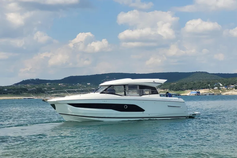Twin inboard Cummins 6.7L 380hp with V-Drives with only 71 Lake Travis hours and Cummins Onan 7.5Kw genset with 135 hours. Cummins joystick docking integrated with independent bow thruster controls. 2 staterooms with 2 head compartment luxury motor yacht fully loaded with every factory option including upgraded JL Audio package integrated with RGB lighting & Fusion marine receivers with transom controller. Beautiful virgin teak cockpit flooring with adjustable tabletop and hydraulic swim platform.