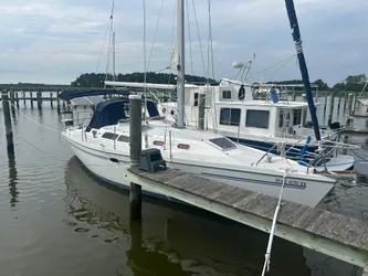 Dream Weaver shows like a new boat. She is exceptionally clean and loaded with all the gear needed for extended cruising. Stepping aboard this Catalina 350 one can not help but notice she feels like a bigger boat. Her large cockpit, wide side decks and broad swim platform make getting around a breeze.