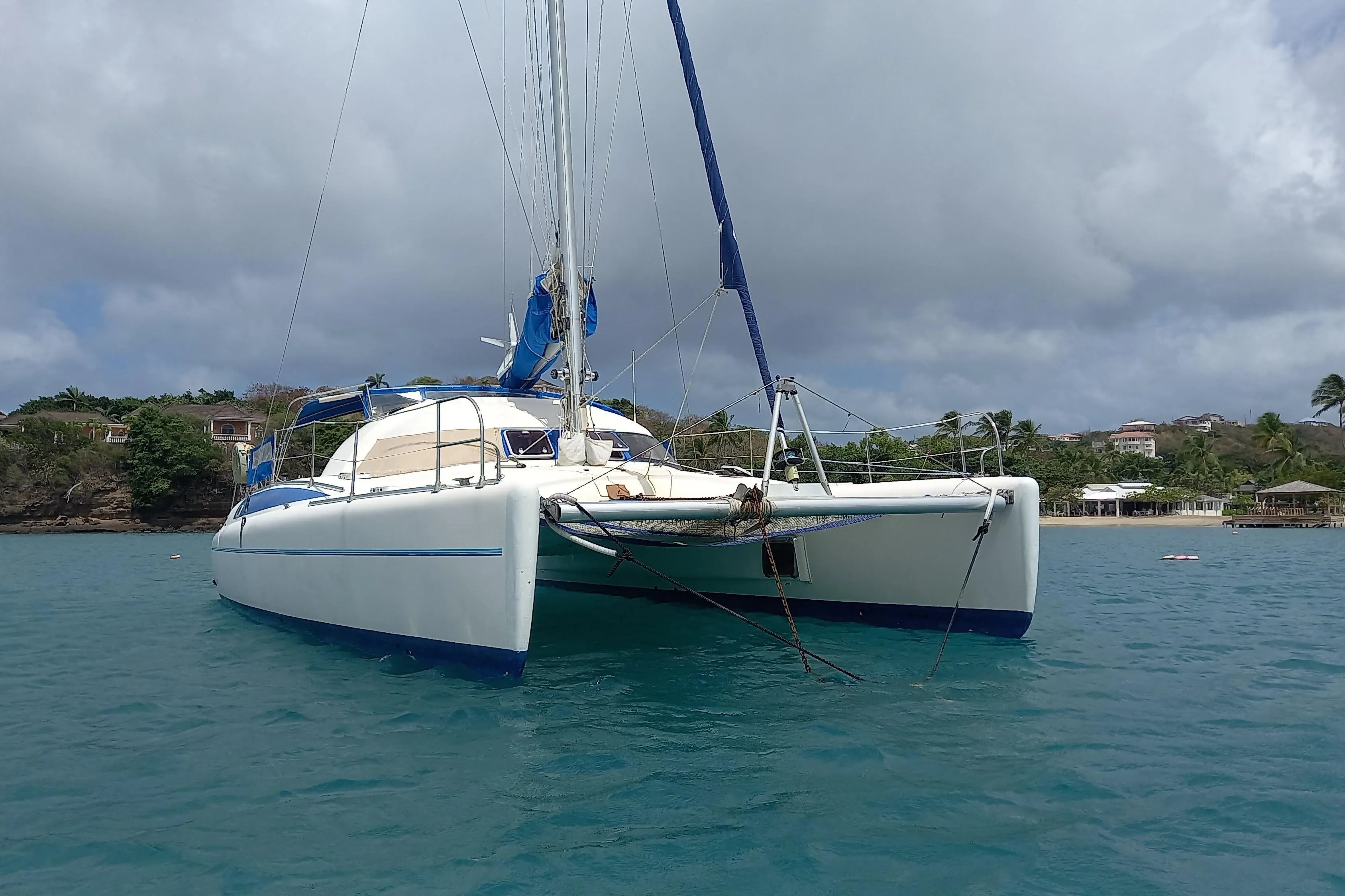 Owners comments: “ We sailed throughout the whole Caribbean for the last 20 years with the catamaran. Each year we sailed appr. for 3 months, the rest of each year it was on storge on land.  We felt absolutely safe on it under all weather conditions. Safe and fast to sail for its size”