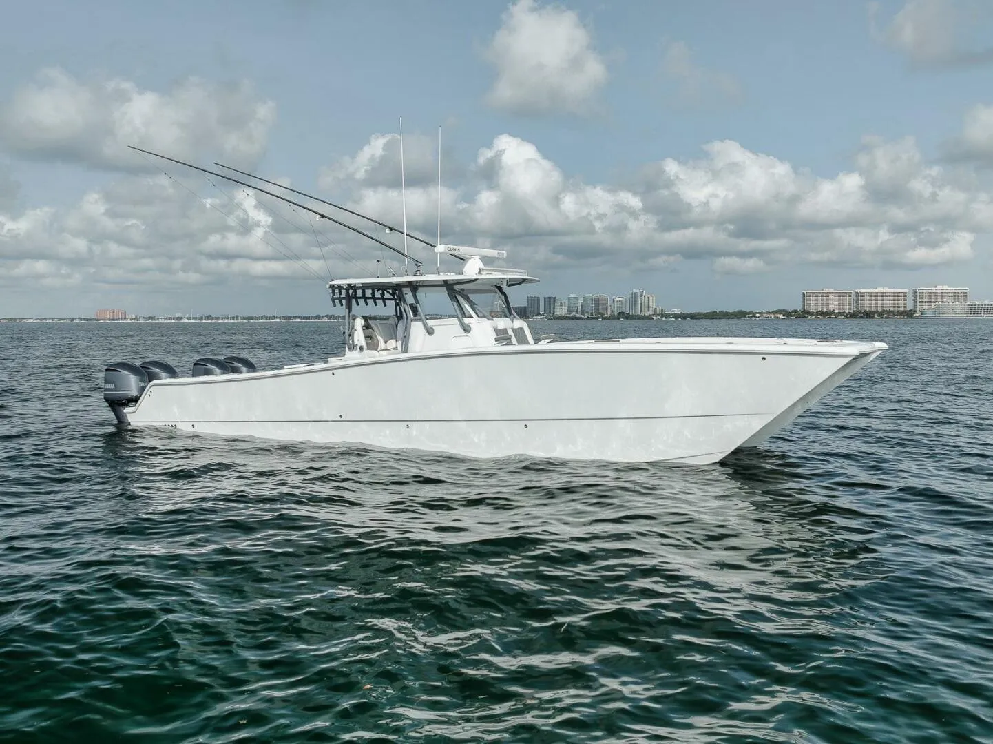With a fuel capacity of over 840 gallons and the ability to achieve an efficiency of 1 mile per gallon while cruising around 34mph, this 2017 Freeman 42 is set up for the most distant fishing adventures. Repowered in 2021 with quad 300 Yamahas with 710 hours, this boat can cover distances that are almost unheard of for an open boat of its class. Known for their incredibly smooth ride and fast cruising speeds, the Freeman 42 is perfect for serious fishing adventures, with the space and amenities to bring everybody along. Whether spending multiple days in the Gulf loading the seemingly endless boxes with big tunas and wahoos, or running through the islands, the Freeman 42 checks all the boxes. Paired with the proven reliability of the V6 Yamaha power package, the Due East is ready for action, no matter where the next destination may be.