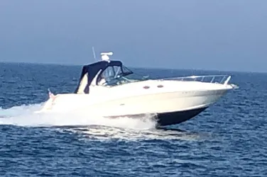 A Super clean and Shiny example of the newer body style 340 Sundancer......and yes, she does have the optional Mercruiser 8.1L Horizons (only 422 hours) and a Generator! (222 hours) The 340 Sundancer has been and continues to be one of the most popular boats on the pre-owned market for many reasons. Sea Ray has got the Styling and Performance down to a fine art on this model. This boat is clean throughout and offers a Cherry interior, New Raymarine radar /plotter , Auto pilot , New Icemaker, New Navy Blue Canvas, Vac U Flush head, Windlass, Air/Heat, Electric engine hatch, SmartCraft Display and much more. The later model 340 Sundancer offers a larger 12' beam, Very comfortable cockpit arrangement and a spacious and open cabin. This boat is in Fantastic condition throughout and is a pleasure to see. Call or email us for all the details.