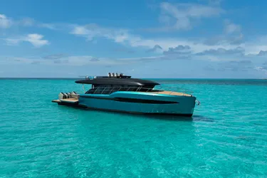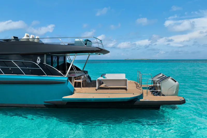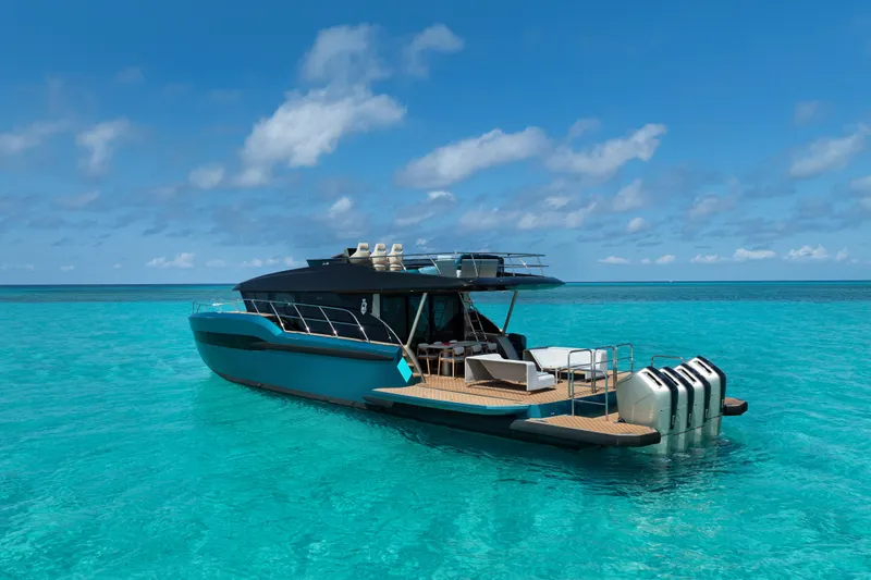 With a shallow 3-foot draft, she is perfectly suited for South Florida and the Bahamas, offering access that many traditional inboard yachts simply cannot match.