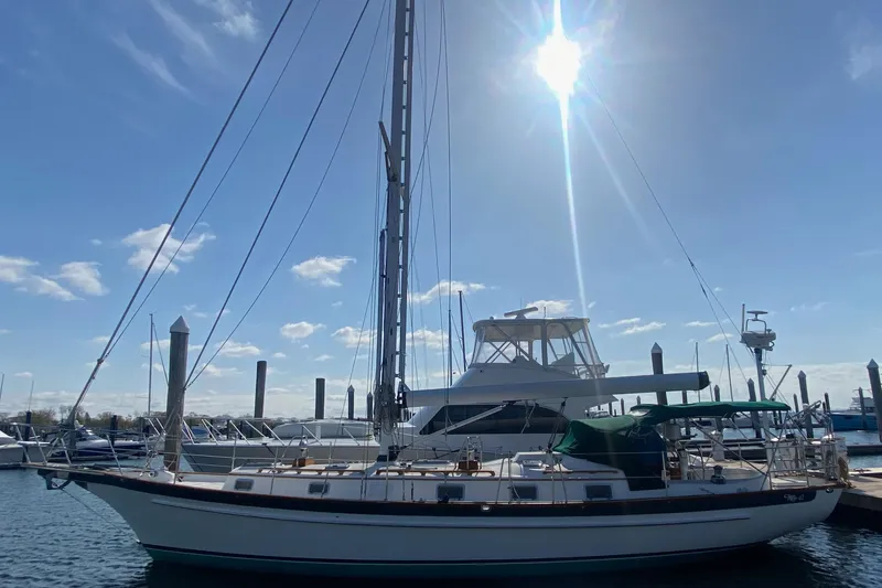 Introducing the stunning 2005 Cabo Rico 42 Cutter, a remarkable cruiser that combines elegance with performance. With an overall length of 46.5 feet, this monohull vessel is crafted from durable fiberglass, featuring a fin keel that enhances stability and maneuverability. Powered by a reliable Yanmar 4JH3E inboard diesel engine, delivering 56 horsepower, it ensures a smooth cruising experience at a speed of 6 knots. The Elation offers comfortable accommodations with two inviting cabins and a well-appointed head, making it perfect for extended voyages. Its thoughtful design includes a stainless steel 3-blade propeller, contributing to efficient navigation. This boat is ideal for those seeking adventure on the water, blending functionality with style. Experience the joy of sailing with the Cabo Rico 42 Cutter, where every journey becomes a memorable escape.