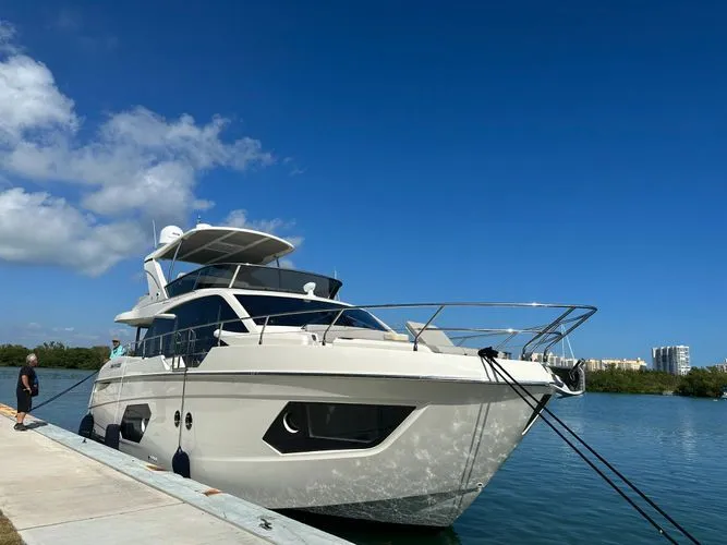 EMERALD is a pristine 2023 Absolute 50 Fly, loaded with options and professionally maintained to a tee. This standout example features the desirable Premium Package, including a Seakeeper 6 gyro stabilizer for comfort at anchor, fiberglass hardtop with sliding hatch, hydraulic swim platform with solid teak floor, bow thruster, and a versatile 4th aft cabin with its own head, shower, and direct transom access—perfect for crew or additional guests.