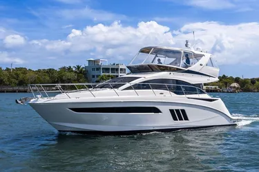 Cruising comfortably around 24 knots with a top speed of approximately 32 knots, the Sea Ray 510 Fly is widely regarded as one of the most popular flybridge yachts in its class thanks to its spacious layout, modern design, and exceptional usability.