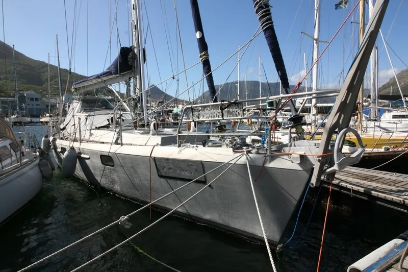 Rigging: Sloop cutter, Sparcraft aluminium mast and boom, foldaway Bowsprit, Hayrack on boom, boom vang, boom brake, hydraulic backstay tensioner, 2 Profurl roller-furling units (C432 & C420), Rutgerson Batt car system, stainless steel cable rigging.