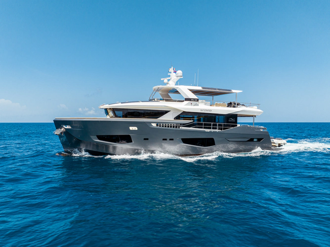 The 2023 Numarine 26XP EXIT STRATEGY is a purpose-built expedition-style yacht accommodating up to eight guests in four spacious staterooms, with additional accommodations for four crew in two dedicated cabins.