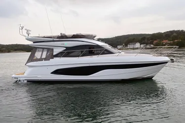 2024 year model • Twin Volvo IPS 650 (2 x 480hp each) diesel engines • Volvo Joystick control • Assisted Docking • Dynamic Positioning System / DPS • Automatic trim system • Variable bowthruster with hold • Hydraulic platform • Walnut interior wood, satin finish • Saloon berth conversion • Heated bathroom floors • Washed/dryer • Dishwasher • Full teak • ONAN generator • BBQ in wetbar • 4x Garmin Glass Cockpit 16 inch chartplotters integrated with Volvo autopilot • Radar • Demist • Heating • Bimini