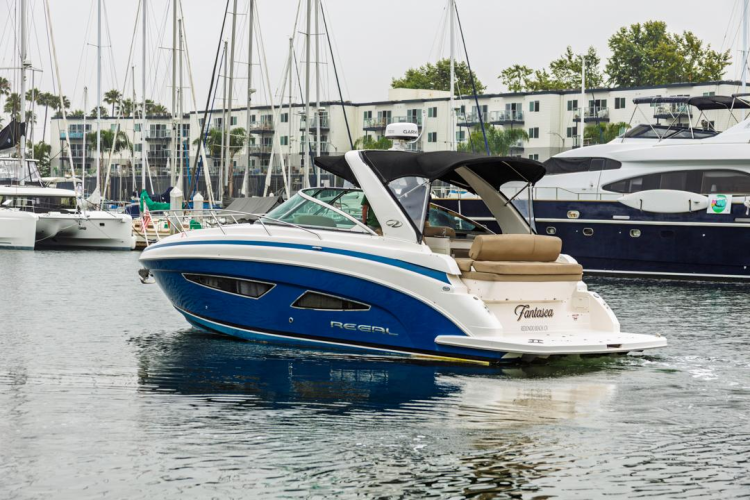 Offered for sale in Marina del Rey, this 2014 Regal 32 Express is a stylish and versatile cruiser, perfect for coastal adventures and weekend getaways. Powered by twin Volvo 300hp engines with approximately 612 hours each, she delivers a top speed of around 45 mph and comfortably cruises in the low 30s. Docking is made easy thanks to a bow thruster, and the large cockpit offers ample seating for entertaining, complete with underwater lights for added flair at night.
