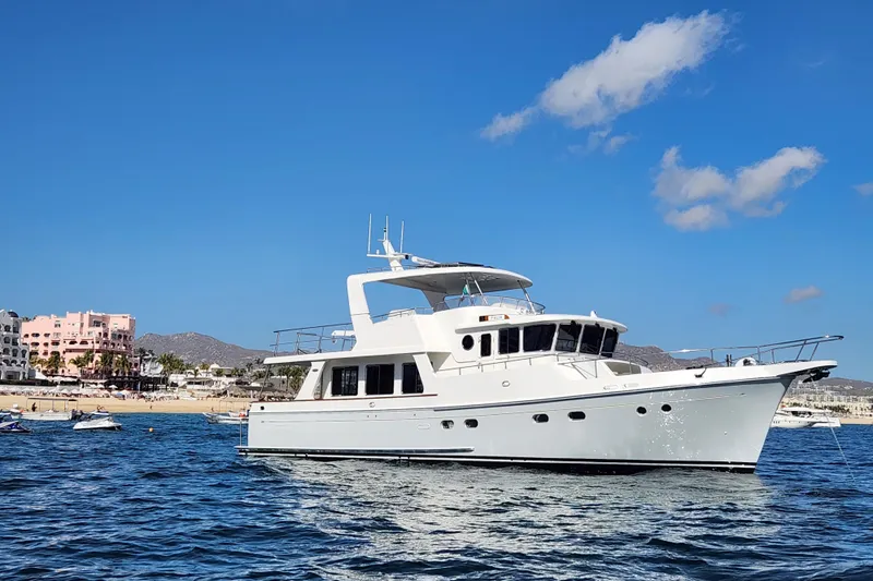 Her full-displacement, hand-laid fiberglass hull with deep forefoot and protective keel delivers exceptional stability, efficiency, and confidence in all conditions. A single reliable diesel engine, paired with impressive fuel capacity, allows for extended cruising at economical speeds, while a well-engineered engine room provides outstanding access for maintenance and systems management.