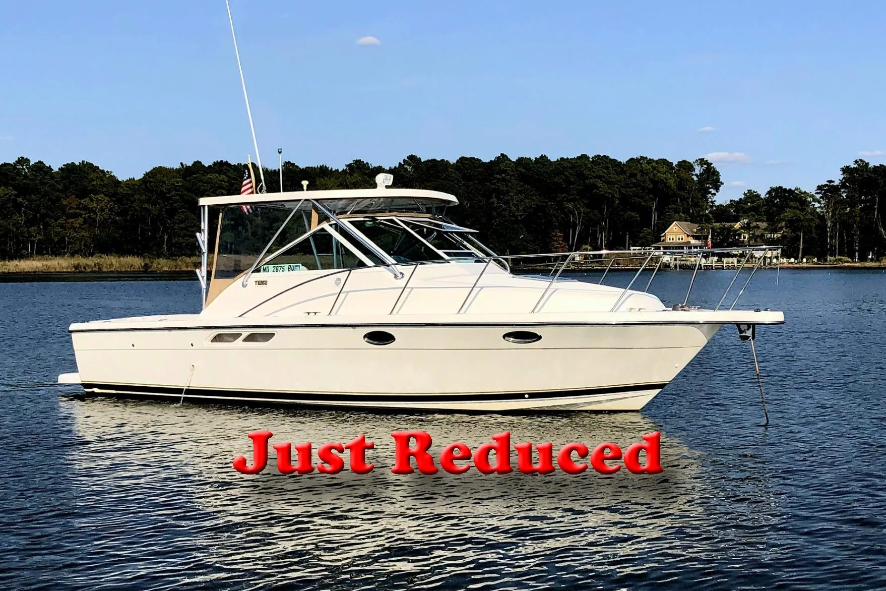 As you step aboard from the transom onto a large swim platform you will note a covered folding swim ladder (nothing to trip on), next your entry into the cockpit is through large double wall transom door. The aft section of the cockpit is large and open with a fold away transom wall seat, full coaming bolsters and two in floor storage lockers with lift out liners providing excellent access to the mechanicals beneath. A small step up into the enclosed cockpit / helm area (new enclosure with Stata-glass). This deck section lifts electrically for engine and generator access. There are several notable features which include a high wrap around windshield with opening center section and aluminum frame, fiberglass hardtop with a large tube polished aluminum frame, L-shaped settee on port side and helm seat on starboard with an aft facing jump seat. There are also individual covers for all seating when not in use.