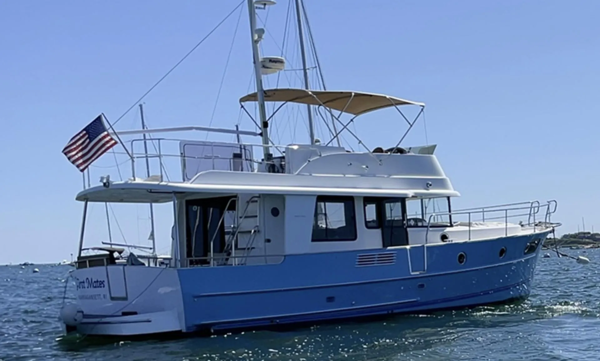FIRST MATES is a great example of this immensely popular fast cruising "Swift Trawler" from Groupe Beneteau. The Beneteau Swift Trawlers remain a best seller for good reason. They are very capable cruisers and comfortable for extended trips. The handle rough conditions well and provide a soft, stable, ride with excellent tracking. Accommodations include two private staterooms and sleeping for six with two heads, galley up, a lovely salon and a huge flybridge.