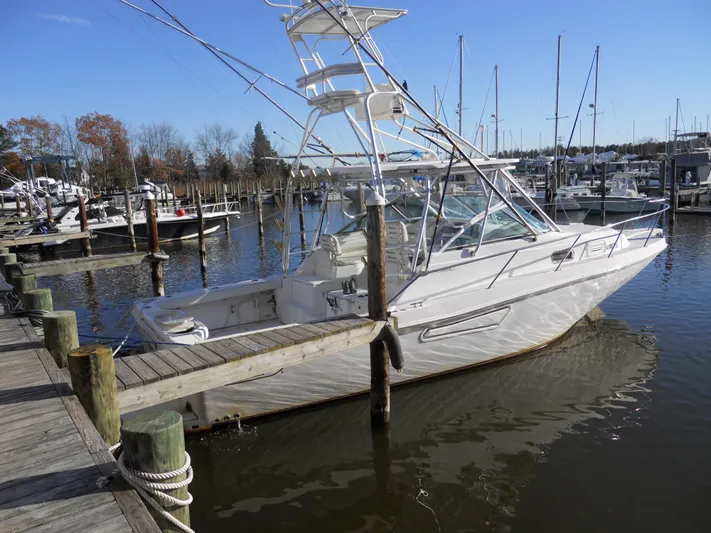 "FISH TALES" HAS HAD MANY UPGRADES AND IS IN EXCELLENT CONDITION.  SHE IS POWERED WITH THE OPTIONAL YANMAR 420 HP DIESELS THAT WILL CRUISE HER AT 26 KNOTS.  HER CURENT OWNER HAS HAD GLENDINNING ELECTRONIC CONTROLS INSTALLED.  SHE HAS A WESTERBEKE 5KW GENERATOR, COMPLET'E UPDATED ELECTRONICS, MOST INSTALLED IN 2014.  SHE HAS A MARLIN TOWER AND ALL FISHING EQUIPMENT TO SATISY THE TOURNAMENT ANGLER.  SHE HAS A SPACIOUS, WELL-FINISHED CABIN THAT WILL ACCOMODATE FOUR COMFORTABLLY FOR OVERNIGHT FISHING TRIPS OR FAMILY CRUISES. "FISH TALES" IS TRULY A FISH RAISER AND HAS TAKEN HER OWNER AND CREW SAFELY ON MANY CANYON OVERNIGHT TRIPS.  SHE IS SAFE AND DEPENDABLE.