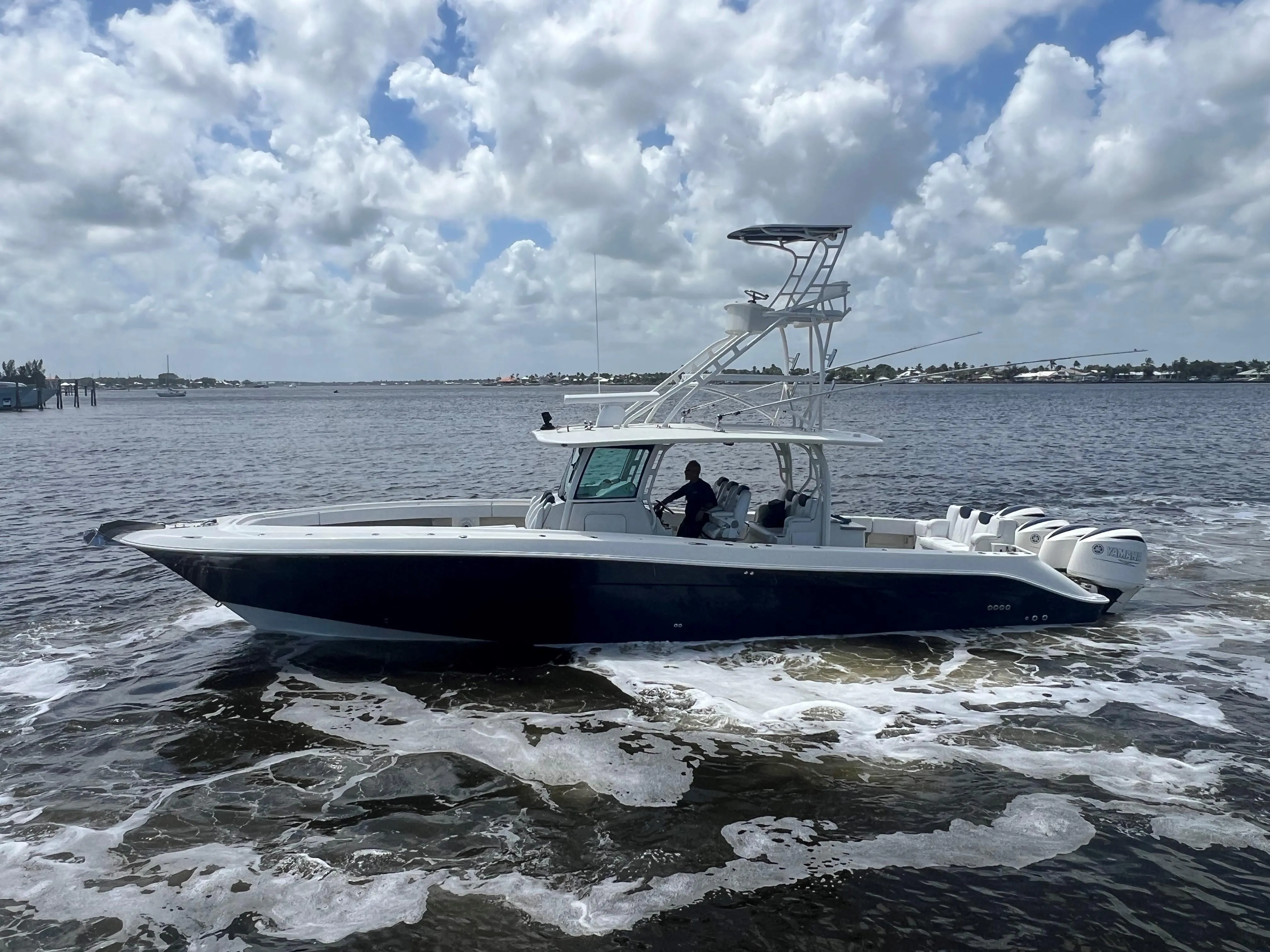This 2015 HCB 42’ Siesta is powered by quad 350 hp Yamaha engines and is equipped with everything you need for comfort, speed, fishing and cruising. She has been lift kept with no bottom paint and has a full tower with electronics. A great boat for Florida fishing or a trip to the Bahamas. Call for more information or to set up a showing on the 2015 HCB 42’ Siesta center console.