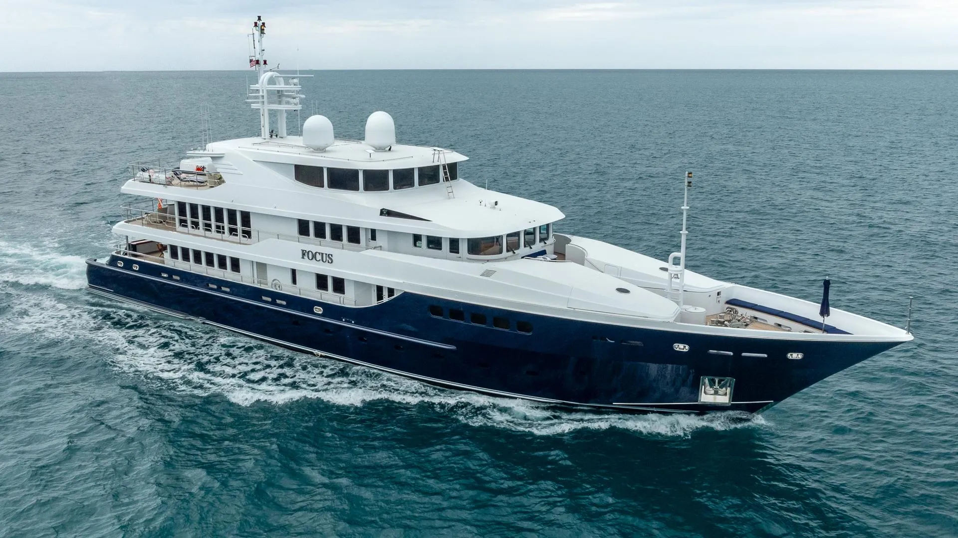 FOCUS can accommodate 10 guests in five cabins consisting of a bridge deck master suite with its own deck, two VIP suites and three twins, all with entertainment centers and en-suite bathroom facilities.