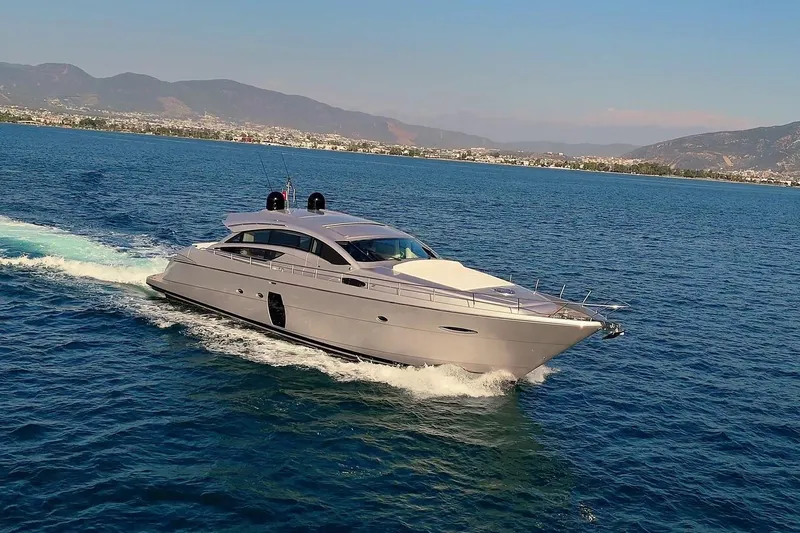 The 2010 72' Pershing FREEDOM 2 is a striking example of Italian craftsmanship, blending luxury, speed, and performance into a sleek, high-performance yacht. With its signature Pershing profile and silver hull, FREEDOM 2 is powered by twin MTU engines paired with Arneson surface drives, reaching an exhilarating top speed of 45 knots. Its spacious, contemporary interior features a well-appointed salon with an electric sunroof, a fully equipped galley, and accommodations for up to six guests in three elegant staterooms. The aft deck boasts ample seating, a sun pad, and a hydraulic swim platform, perfect for entertaining or enjoying the open water. Designed for those who crave both luxury and adrenaline, FREEDOM 2 offers an exceptional yachting experience.