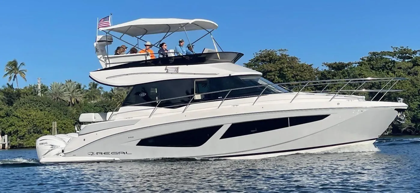 The Regal 42 FXO is truly a one of a kind outboard-powered sport yacht. Incredible performance, outboard versatility, and premium luxury come together for endless entertainment and relaxation at incredible destinations. Thanks to the addition of outboard power the 42 FXO becomes the ultimate sandbar hopper.