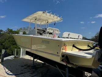 Features: Transom rigging station with sink; transom livewell; lockable rod storage; fresh/raw water washdowns; roomy walk-in console with marine head and sink/shower; in-deck fish boxes; leaning post with rod holders; in-deck dry storage; cockpit bolsters; anchor locker; trim tabs. Tons of factory options were available.