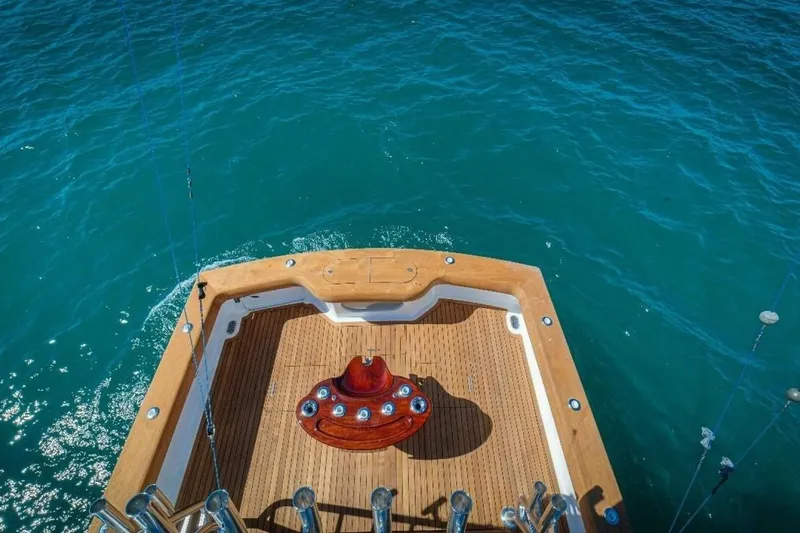 With a stout, nearly 13’ beam carried well aft, she offers a tremendous platform and stable ride for her size. Stability is further enhanced with a Seakeeper 5. She shines in many categories, but a significant standout is her efficiency in fuel burn and great visibility from the helm. A true joy to run and ride, her fishability speaks for itself.