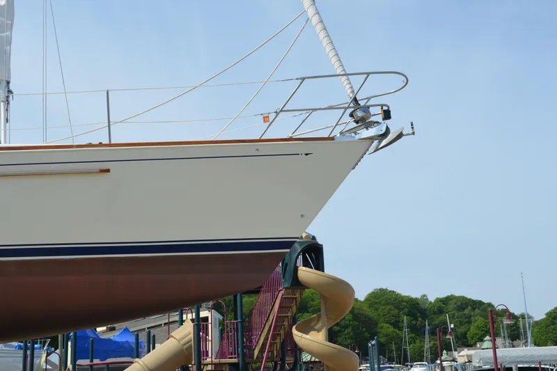 The Sabre 425 is designed to meet the demands of the sea while offering her crew handling characteristics that provide comfort and build confidence. The deck plan is thoughtfully designed for safety and ease of handling. She has a high aspect, balanced rig and a powerful hull shape that yields excellent sea kindliness and directional control. Her readily managed sail plan and rigging have been developed for the correct balance between light-air performance and heavy weather stability. She has sturdy rod rigging and double airfoil spreaders, a strong and aerodynamically precise design.