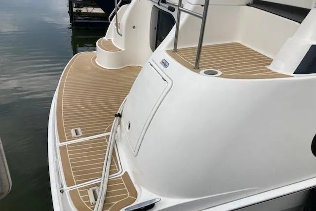 Equipped with a bow thruster, docking and maneuvering are easy and stress-free, even in tight marinas. The boat features a plasDECK teak decking upgrade on transom, giving you the classic look of teak with far less maintenance.