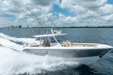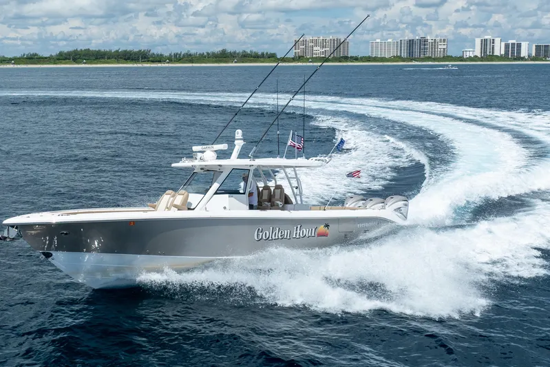 A ground-breaking progression of technology, power, fishability and yacht-like luxuries in a modern center console boat. The 395cc is at its core a meticulously outfitted fishing machine with best-in-class fishing features and design. Beyond its tough fishing exterior lies a new level of luxurious comfort and aggressive styling, making the 395cc a powerful experience for the senses.