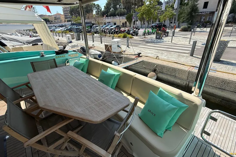 L'intérieur du Navetta 58 est un véritable havre de paix. Vous y trouverez des espaces de vie spacieux et luxueux, incluant :