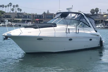 The Cruisers 340 Express offers unbeatable performance in an expertly designed, luxurious cruising package. Her interior accommodations will sleep five comfortably. The forward stateroom features a large double bed with easy access, and the stateroom can be closed off from the salon by a privacy curtain or an optional bulkhead and door. Aft, owners can select either a fixed double berth, maximizing overnight accommodations for guests, or an alternate layout with a circular settee that can also be converted to a double berth. With the settee layout, this area can effectively lengthen the salon into one wide open living space or, with the privacy curtain, it can serve as a comfortable mid cabin. The facing dinette - or available crescent-shaped, convertible dinette - to starboard provides an additional berth. Located just to port of the companionway is a full-service galley with all the amenities, including a large refrigerator/freezer, microwave and double-burner electric stove. For additional on board convenience while cruising or living aboard, the 340 also provides a feature unusual for a boat in this class: a spacious head with a large, separate shower stall and full standing headroom. Above decks, the 340 has a generous cockpit seating arrangement that is ideal for dockside or on-the-water entertaining. She also features a wet bar, cockpit shower and available cockpit refrigerator or ice maker - perfect for fun-filled summer afternoons with family and friends. A custom-fitted enclosure will keep everyone protected from the hot sun or inclement weather. And, the 340 Express boasts a wide variety of power options, as she is available with either stern drive or inboard power.