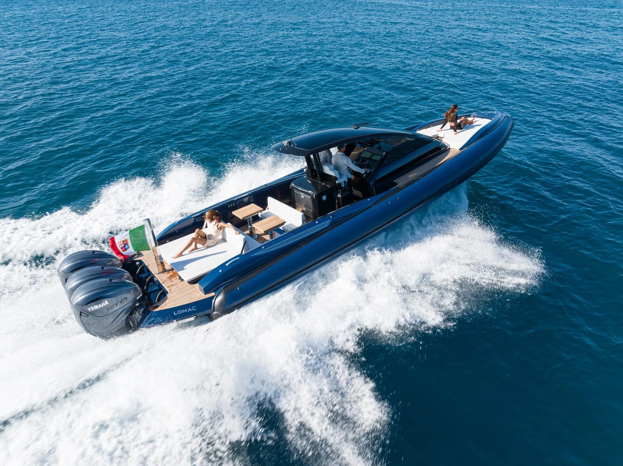 Il Granturismo 14.0 X può essere motorizzato fino a 1.350 cavalli (3 x 450 hp), raggiungendo velocità massime prossime ai 60 nodi con assetto impeccabile. La carena a V profonda, frutto dell’esperienza di Lomac nei settori militari e professionali, garantisce stabilità, sicurezza e prestazioni elevate anche in condizioni marine impegnative.