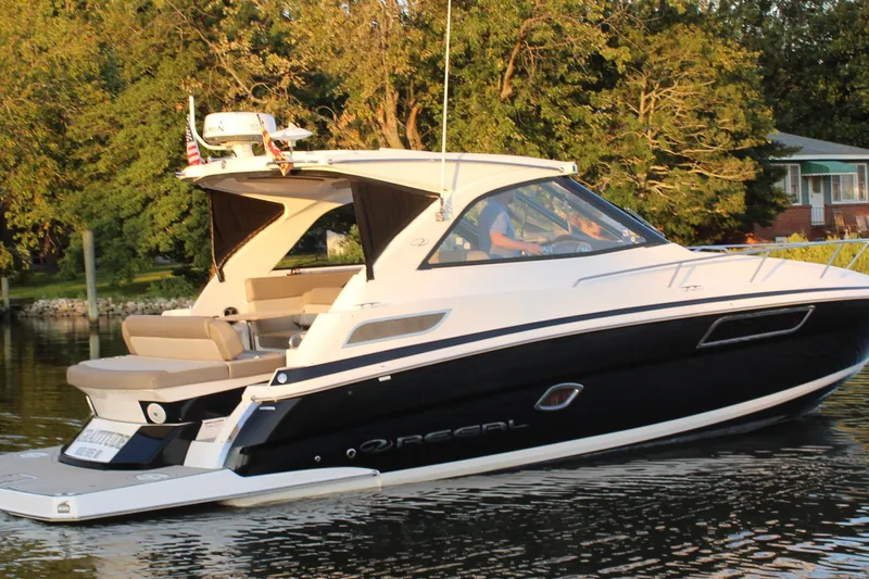 The 35 Sport Coupe is a luxury express cruiser designed for boaters who want high style, performance and comfort. The 35 Sport Coupe is big enough for weekend escapes, day cruising or entertaining. The 35 Sport Coupe features the unobstructed view through glass. Like a hardtop, but don’t want to always exclude the sun? The push of a button retracts the convertible top. Hot summer days forcing you in the cabin? The 35′s optional cockpit AC helps you keep your cool.