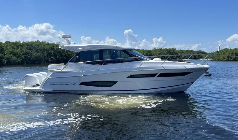 Do everything on the water with the 2020 Regal 38 XO. Powered by Yamaha outboards with Helm Master and the Optimus 360 Joystick, Great Expectations offers effortless control and full maneuverability. The open-concept cockpit and salon feature sliding glass doors and a roll-down window for seamless indoor-outdoor flow, while a retractable hardtop sunroof adds to the versatility. Whether you’re hosting guests or cruising with family, this boat is built to deliver a smooth, stylish experience.