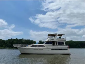 “GYPSY JAX” is a well-maintained 1987 Chris-Craft 500 Constellation featuring a highly desirable three-stateroom, three-head layout. She is powered by twin Detroit Diesel 6V92TA engines and equipped with a 20kW Onan diesel generator, making her ideal for extended cruising or comfortable full-time living aboard.