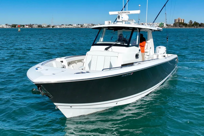 Ergonomically designed helm seating and dash for the ultimate in comfort and control. And the fact that it’s the only center console in the 34' to 35' market to have an enclosed head. Whether you are socializing on deck, driving to your secret fishing spot or taking a moment to yourself, you’ll appreciate the thoughtful craftsmanship instilled in every inch. Plus, forward-facing lounge seats in the bow, side coaming storage and built-in rod holders add to the ways you and your family can enjoy this boat.
