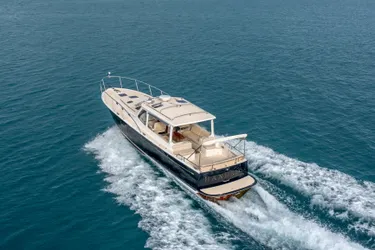 The 40z blends performance, extended cruising, and outstanding fuel efficiency with day boat sociability. Volvo IPS joystick technology eliminates stress around docks. The single level floor in the cockpit provides safety and security as you move through the social zones. The 40z's 12' beam and low overall height makes transport to your favorite destinations easy.