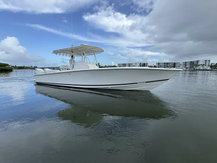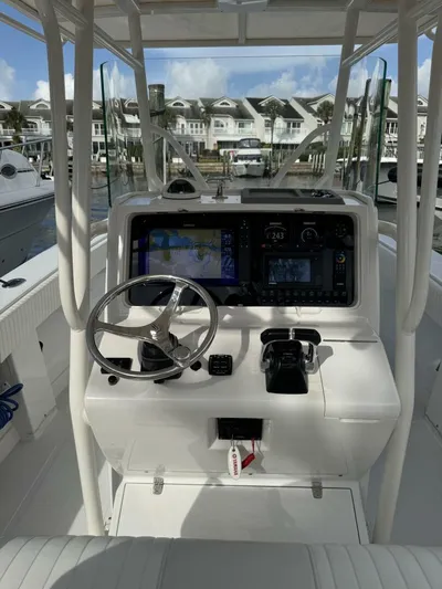This 2004 Jupiter 31' center console is a standout vessel, updated in 2018 with twin Yamaha 300HP 4-stroke outboards and Simrad electronics. She’s in excellent condition and fully equipped for offshore fishing or family cruising.