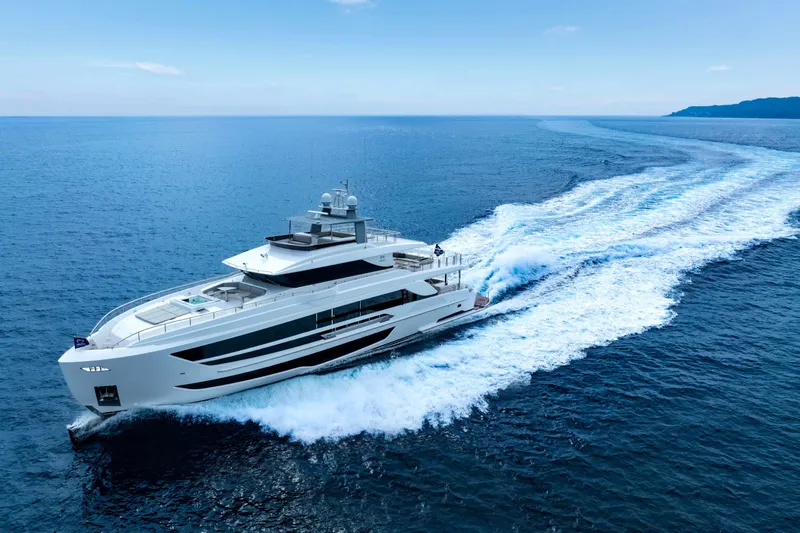 The Horizon FD110 represents the next generation of luxury superyachts with stylish exterior lines, impressive interior volume and large outdoor spaces. This five-stateroom yacht features an on-deck deluxe master stateroom and plentiful dining and entertaining areas throughout, including a Tri-Deck. The FD110 comfortably accommodates a crew of six in forward crew quarters with a large, fully equipped beach club aft.