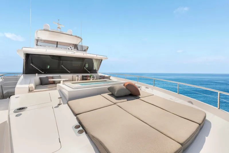 Foredeck Jacuzzi w/ sun pad, drink holders, and storage
